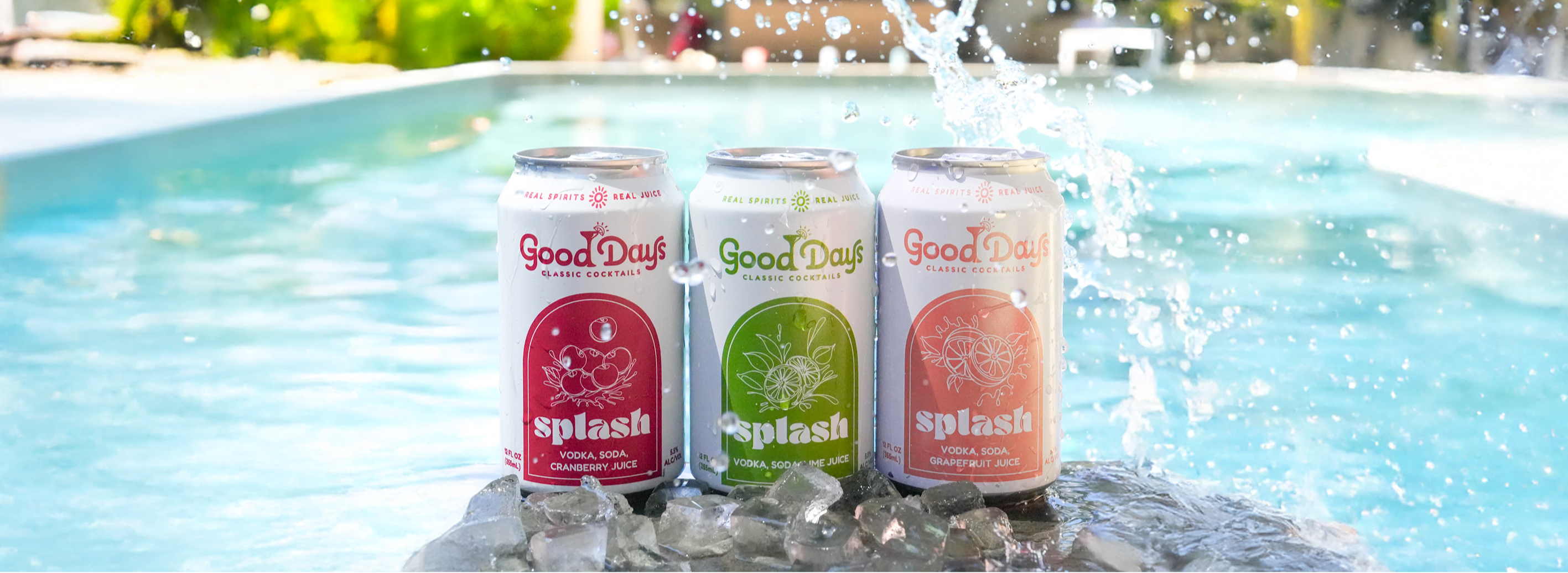 Crafted by GoodDays Classic Cocktails, splash delivers clean, crisp refreshment with a burst of classic fruit juice and none of the bland, artificial taste you’ve come to expect from hard seltzers.